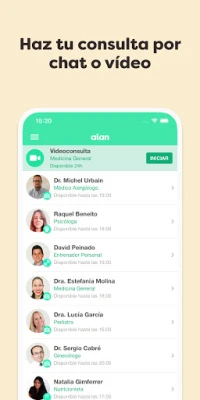 Alan Teleconsultas te permitirá hablar con un médico cuando lo necesites y estés donde estés a través de tu teléfono. Podrás hacer videollamadas con un doctor para cualquier consulta de medicina general, y utilizar el servicio de chat para consultas referentes a más de diez especialidades médicas. Desde la app también podrás acceder a tu historial médico y las prescripciones que te recete el doctor.