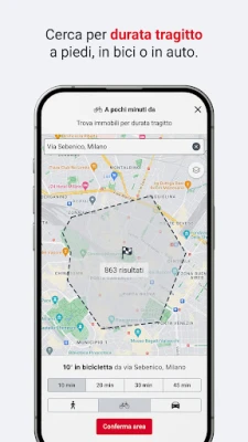 • Cerca le case raggiungibili in pochi minuti (in auto, in bici o a piedi) da dove vivi o dove lavori o qualsiasi indirizzo importante per te