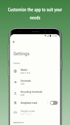 Features of the application “Want mark!”: • customizable rating scale (up to 12 points) • ability to calculate the weighted average mark • adjustable threshold for rounding the average mark • saving marks in the context of subjects • tips on how to achieve the target mark